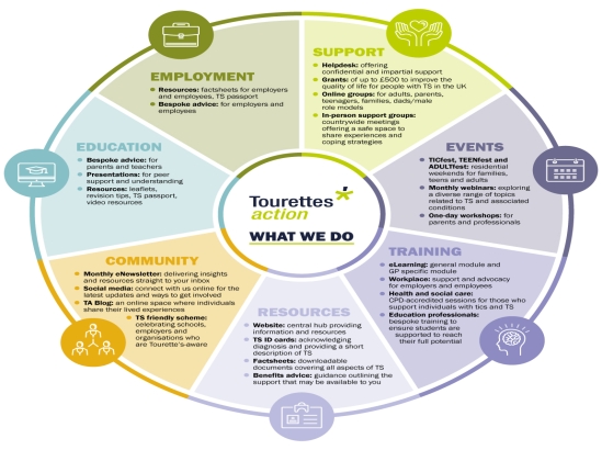 Tourettes Action is a support and research charity working to improve the lives of people living with Tourette syndrome. Our services include online live-chat and email support, online and face-to-face support groups, training, webinars, events and resources.
